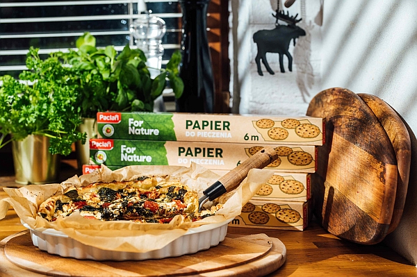 - Przygotowując danie z gotowych spodów warto pamiętać, aby wcześniej wyścielić naczynie papierem do pieczenia. Profitów jest kilka - po pierwsze nasz wypiek nie przywrze do ścianek i będzie można go łatwo pokroić i zaserwować. Po drugie - zaoszczędzimy czas na szorowaniu formy czy naczynia żaroodpornego z przypalonych składników, bo wszystkie niepożądane elementy pozostaną na papierze do pieczenia, który po zakończonym posiłku wystarczy wyrzucić - mówi Marta Krokowicz, Brand Manager marki Paclan i dodaje: jeśli w swoich codziennych wyborach myślimy o środowisku, wybierając papier do pieczenia zwróćmy uwagę, czy posiada on certyfikat FSC. Wówczas będziemy mieć pewność, że surowiec, wykorzystany do stworzenia produktu pochodził z certyfikowanych upraw, które odpowiedzialnie gospodarują zasobami leśnymi.