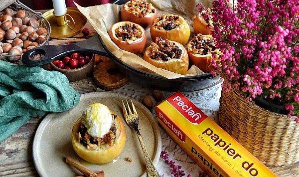 – Najlepiej przykrywać deser folią tylko na pierwsze 30 minut pieczenia. Dzięki temu jabłka będą bardziej soczyste i przejmą aromat nadzienia. Pod koniec warto folię zdjąć – wtedy owoce pięknie się zarumienią, a cukry na ich powierzchni delikatnie skarmelizują. To prosty trik, który sprawia, że deser nie tylko lepiej smakuje, ale też wygląda bardziej apetycznie – podpowiada Marta Krokowicz, ekspertka marki Paclan.